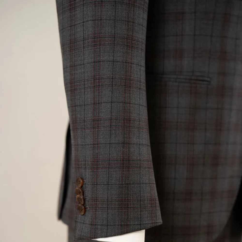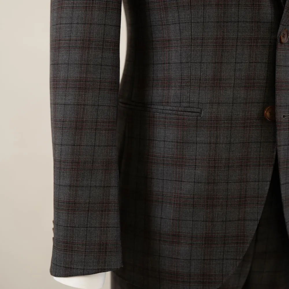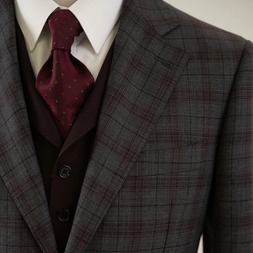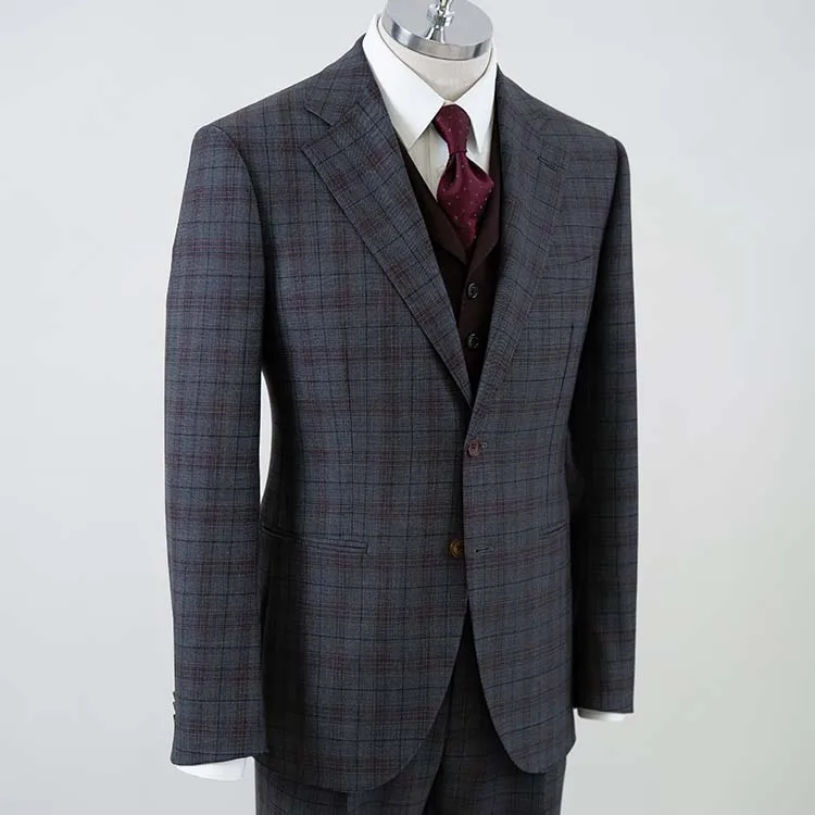 MTM Service Breathable Plus Size Big Men's Business Suit Blazers Notched Lapel Wool Grey Plaid Coat Pant Single Breasted